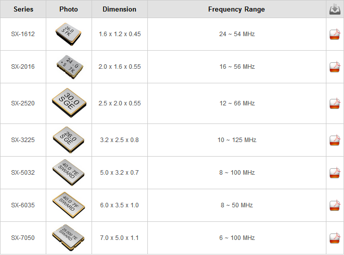 | 晶振目錄 | 希華貼片晶振型號(hào)SX-5032mm | |