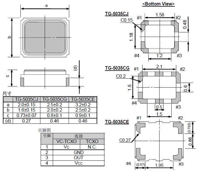 | 晶振參數 | 符號 | TG-5021CE |