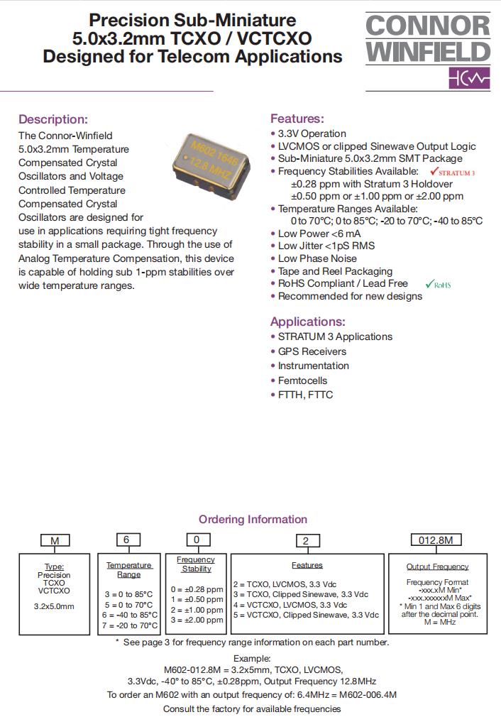 M724-020.0M,進口VC-TCXO晶振,6G模塊晶振,美國ConnorWinfield晶振,M72有源晶振,M724-020.0M晶振,5032mm晶振,VC-TCXO晶振,進口SMD晶振,LVCMOS輸出晶振,頻率20MHz,電壓3.3V,工作溫度-20~70°C,頻率穩(wěn)定性1ppm,低相位噪聲晶振,高可靠性晶振,6G模塊晶振,第三層應用晶振,GPS導航晶振,儀器儀表應用晶振,無線網絡晶振.