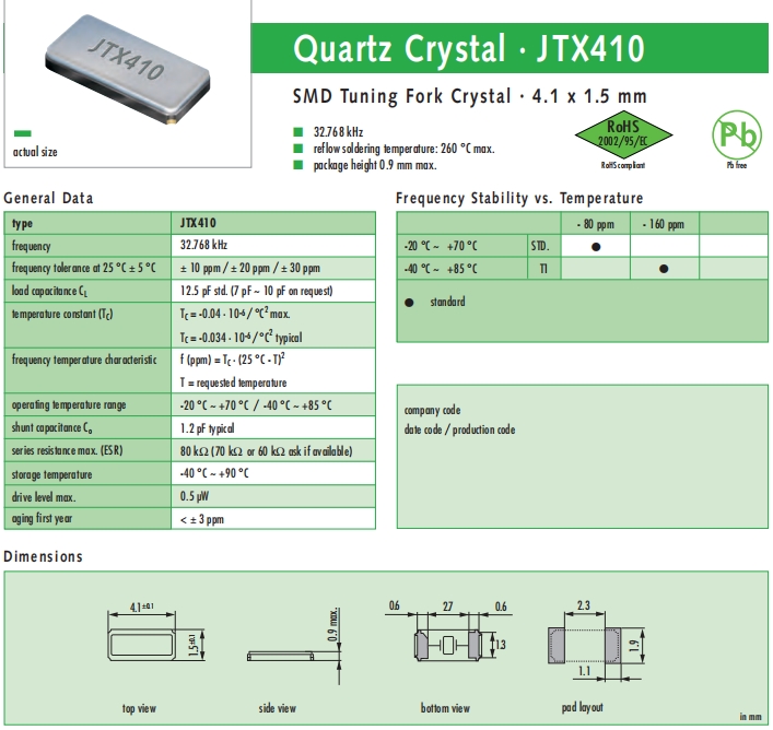 | JAUCH晶振 | 單位 | JTX410晶振 | 石英晶振基本條件 |