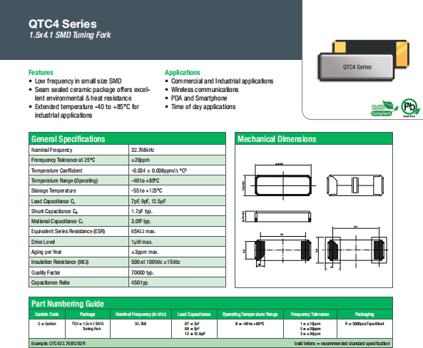 | Qantek晶振 | 單位 | QTC4晶振 | 石英晶振基本條件 |