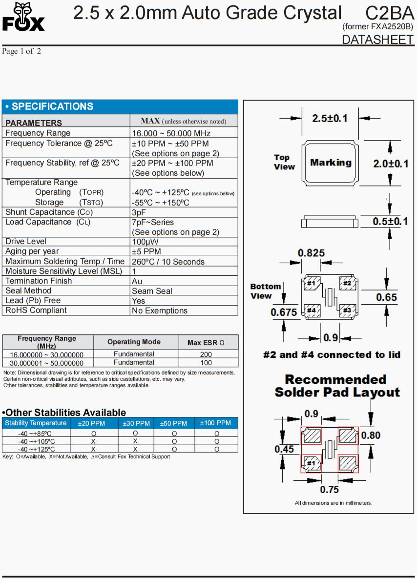 | 頻率容差 | ±10 PPM ~ ±50 PPM(See options on page 2) |