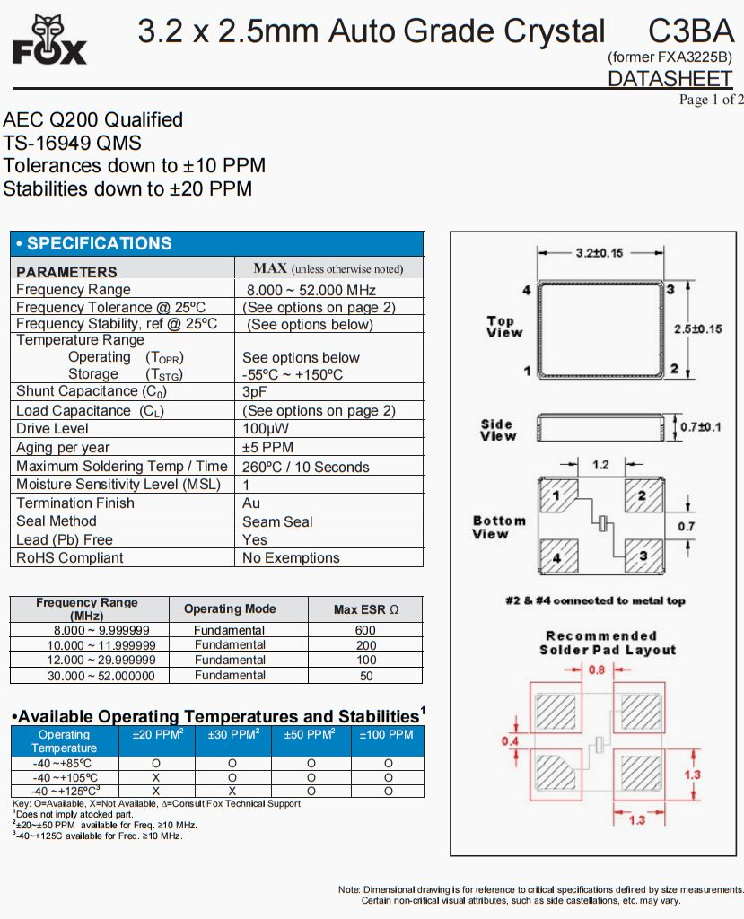 FOX汽車晶體,領(lǐng)先全球的電子手剎晶振,FC3BABCVI52.0晶振