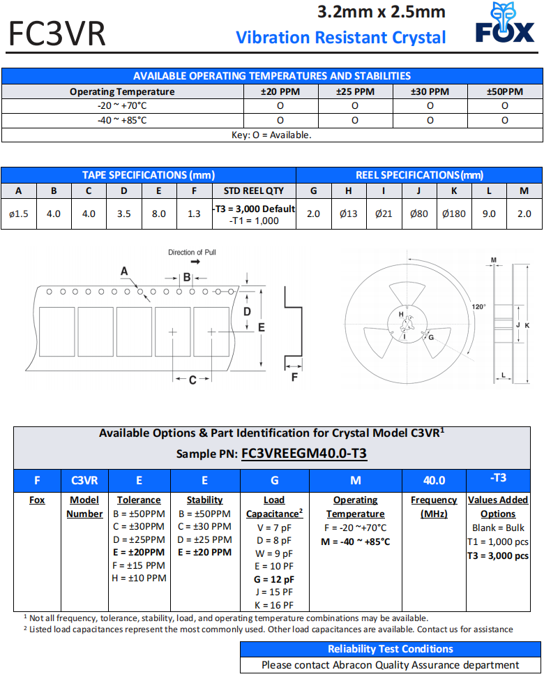 | FC3VREEDM40.0-T1 | Fox晶振 | FC3VR | 40 MHz | ±20ppm |