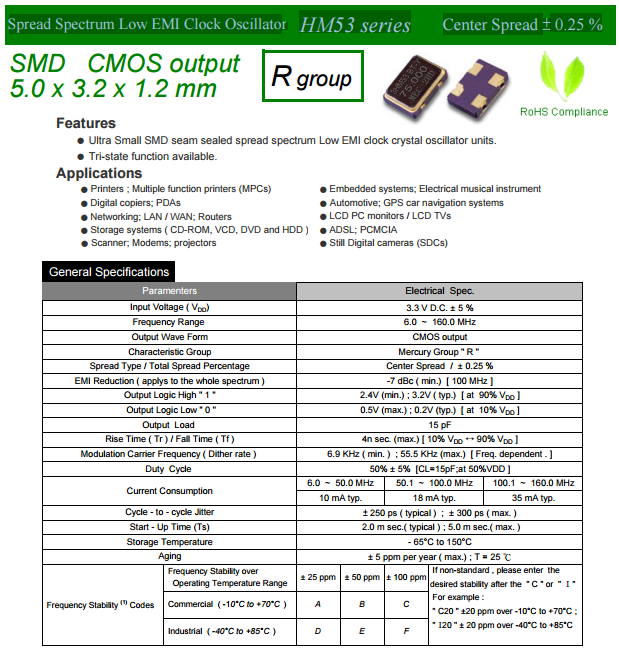 MERCURY晶體,5032有源晶振,HM53R石英晶體振蕩器.貼片有源石英晶振是指在普通無源晶體上增加了電壓,內(nèi)部集成了相應(yīng)IC與電容電阻,需要在凈化萬級(jí)車間生產(chǎn),并且在密封機(jī)器設(shè)備中焊接加蓋,內(nèi)部封裝模式是指在真空封裝區(qū)域內(nèi)進(jìn)行封裝.1.防止外界氣體進(jìn)入組件體內(nèi)受到污染和增加應(yīng)力的產(chǎn)生;2.使組件在真空下電阻減小;3.氣密性高.此技術(shù)為研發(fā)及生產(chǎn)超小型,超薄型石英晶體元器必須攻克的關(guān)鍵技術(shù)之一