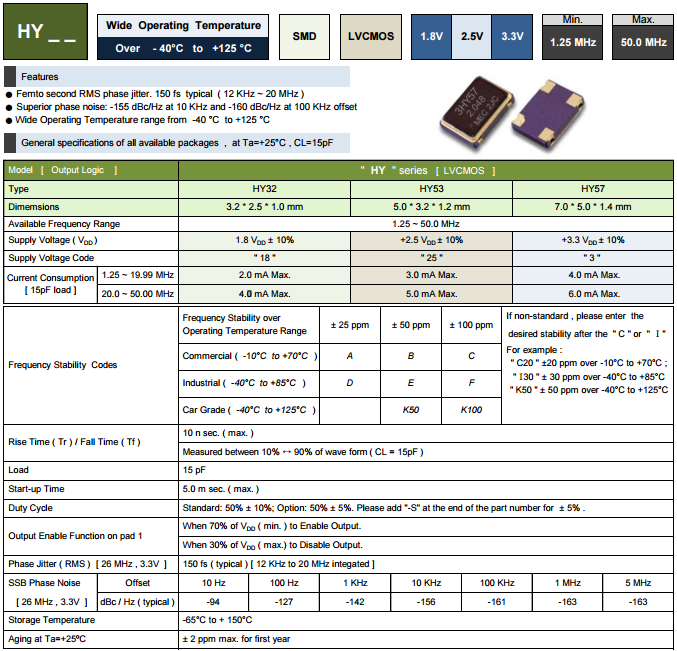 MERCURY晶振,貼片振蕩器,HY57耐高溫晶振.石英晶體振蕩器在設計時就與各款型號IC匹配等相關技術,使用IC與晶片設計匹配技術:是高頻振蕩器研發(fā)及生產過程必須要解決的技術難題.在設計過程中除了要考慮石英晶體諧振器具有的電性外,還有石英晶體振蕩器的電極設計等有它的特殊性,必須考慮振蕩器的供應電壓,起動電壓和產品上升時間,下降時間等相關參數(shù). 石英晶振多層、多金屬的濺射鍍膜技術:是目前研發(fā)及生產高精度、高穩(wěn)定性石英晶體元器件——石英晶振必須攻克的關鍵技術之一。石英晶振該選用何鍍材、鍍幾種材料、幾種鍍材的鍍膜順序,鍍膜的工藝方法(如各鍍材的功率設計等)。使用此鍍膜方法使鍍膜后的晶振附著力增強,貼片晶振頻率更加集中,能控制在最小ppm之內。