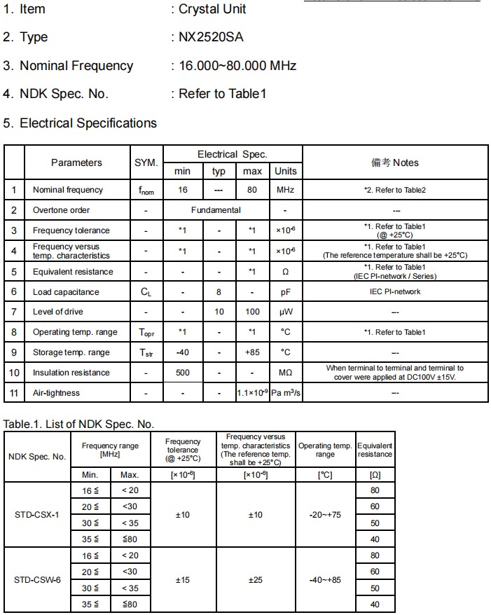 | NX2520SA-16MHZ-STD-CSW-5 | NDK晶振 | NX2520SA | 16MHz | ±25ppm | 4-SMD, No Lead |