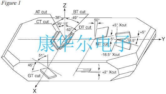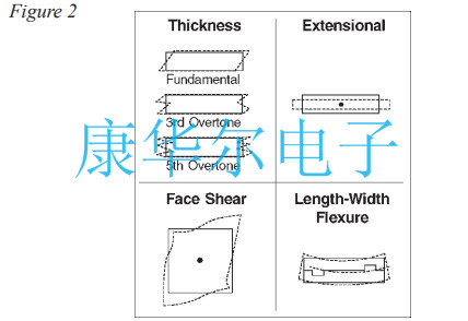 如上所示的元素以各種模式振動(dòng),其中最重要的是伸展的,彎曲的和剪切.振動(dòng)模式?jīng)Q定了晶振最大頻率,穩(wěn)定性與溫度,和給定元素的阻力.各種模式振動(dòng)如圖2所示,同時(shí)進(jìn)行比較各種頻率穩(wěn)定性與溫度有關(guān)如圖3所示.