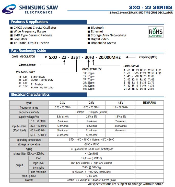 韓國(guó)新松晶振,SXO-22晶體振蕩器,SXO-22-15ST-30F3-20.000MHz晶振