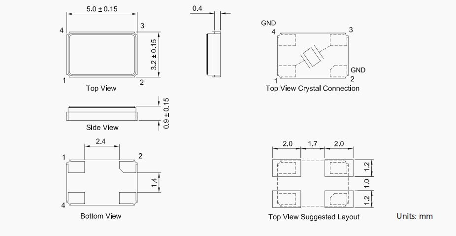 | 頻率容差 | ± 10 ppm, ± 20 ppm, ±50 ppm Max |