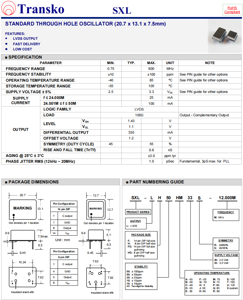 SXL-LH25CQ33S-26.000M,6G應用晶振,特蘭斯科石英鐘振,特蘭斯科石英鐘振,SXL進口正方形鐘振,SXL-LH25CQ33S-26.000M晶振,石英晶體振蕩器,有源晶振,頻率26MHz,電壓3.3V,工作溫度-40~85°C,頻率穩定性25ppm,LVDS輸出晶振,低相位抖動晶振,6G應用晶振,計算機及外圍設備晶振,存儲區域組網晶振,寬帶接入晶振,微控制器/ FPGAs晶振,以太網/千兆以太網晶振,光纖通道晶振.