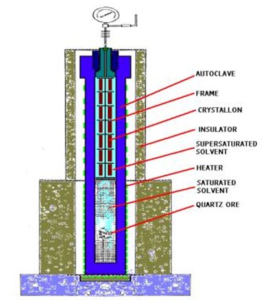 石英晶體的生長(zhǎng)設(shè)備是高壓釜,如下圖: