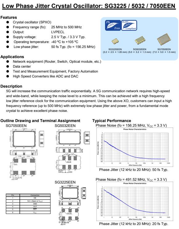 愛(ài)普生公司發(fā)布了SG3225EEN,編碼X1G005221000200,晶體振蕩器(SPXO),頻率范圍:25mhz ~ 500mhz,輸出:LVPECL差分晶振,電源電壓:2.5 V/ 3.3 V典型,工作溫度:-40℃~ +105℃,低相位抖動(dòng):50 fs(fo = 156.25 MHz)