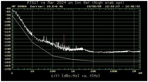 馬可尼2024現在設置為使用外部基準電壓源.另一個CFS10B-03用作外部基準電壓源. 相位噪聲的測量方法與以前完全相同.