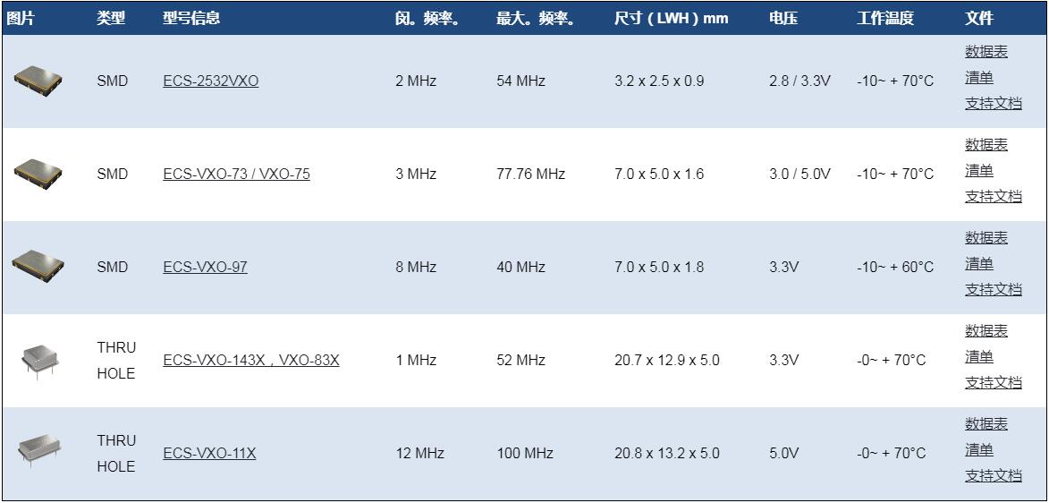 ECS品牌的VCXO壓控晶振料號(hào)有哪些?