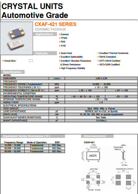 AKER晶振,CXA-028224-4X6D00晶振,CXAF-421晶體,安碁科技亦不斷提升技術(shù)服務(wù).透過與客戶緊密的互動,了解客戶需求,提供客戶全方位的技術(shù)支援─TotalSolution;貫徹安碁誠信為首、專業(yè)化客戶服務(wù)及品質(zhì)優(yōu)先的理念.公司愿景-追求卓越,不斷創(chuàng)新,與客戶一同成長,成為客戶在頻率控制元件領(lǐng)域的最佳伙伴.主要從事晶振元件產(chǎn)品的研發(fā)、制造及銷售.擁有深厚的研發(fā)技術(shù)底蘊,為晶體振蕩器之專業(yè)制造公司.