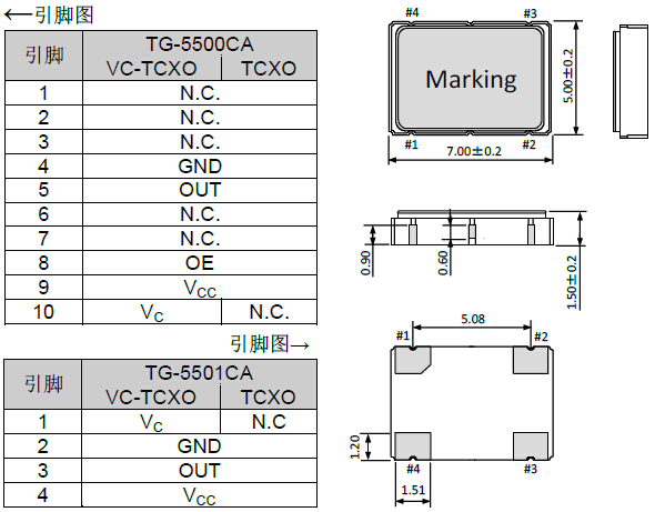 TG-5501CA振蕩器,5070mm溫補晶振,進口愛普生晶振,小型5070尺寸有源晶振,電源電壓3.3V,工作頻率10~50MHZ,小體積產(chǎn)品帶來了更高的穩(wěn)定性能,接縫密封石英晶體振蕩器,精度高,覆蓋頻率范圍寬的特點,SMD高速自動安裝和高溫回流焊設計.