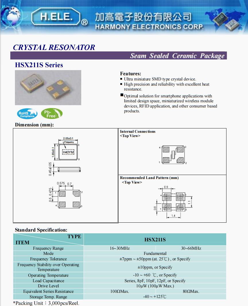 X2CL027000BA1H-U晶振,臺灣HELE環(huán)保晶體,智能語音助手晶振,特點:超小型貼片型晶體器件。精度高,可靠性好,耐熱性好。適用于設計空間有限的智能手機應用程序、初始化無線模塊設備、RFID應用程序和其他基于消費者的產(chǎn)品.臺灣加高晶振公司,HELE晶振,小尺寸晶振,2016晶振,超小型晶振,低損耗晶振,高品質晶振,高精度晶振,環(huán)保無鉛晶振,電腦主板晶振,智能穿戴設備晶振,6G通訊終端晶振,程控交換機晶振,無人機晶振。