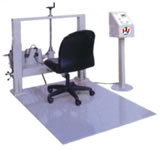 辦公椅座面放置負重,以氣缸夾住中心管往復做推拉運作,以評估腳輪之耐磨壽命,行程、速度及次數均可設定。