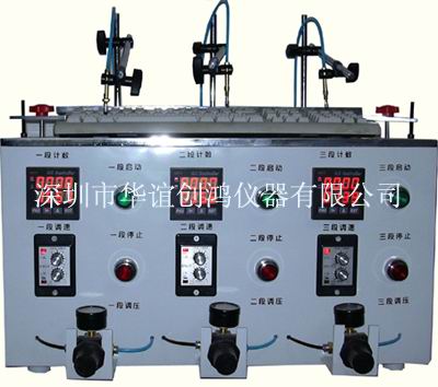 簡單說明:本機可對電腦、手機、計算器、記事本等鍵盤做壽命測試。 尤其適用于電腦鍵盤按鍵作疲勞測試 [特點]: 本機采用日本原產之氣動原件,最多可同時測試3個按鍵,每個工位可獨立動作互不干預 由于采用萬向節支臂,測點可于鍵盤上的任意一點,高度易于調整 操作簡便,性價比高