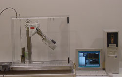 上圖所示飲料罐沖擊試驗機設計沖擊速度最大到10 ft/s。hemispherical 形沖擊刃用于沖擊或穿刺飲料罐。該試驗機采用的是示波沖擊刃,因此可以測量力、偏轉和能量值。光電編碼器用于測量沖擊刃從釋放到沖擊瞬間的速度。該系統可以檢測飲料罐厚度變化on the order of 0.0001 inches (1 ten-thousandth of an inch)。該試驗機配備安全防護罩防止試驗過程中飲料罐內液體飛濺,并保護操作人員安全。