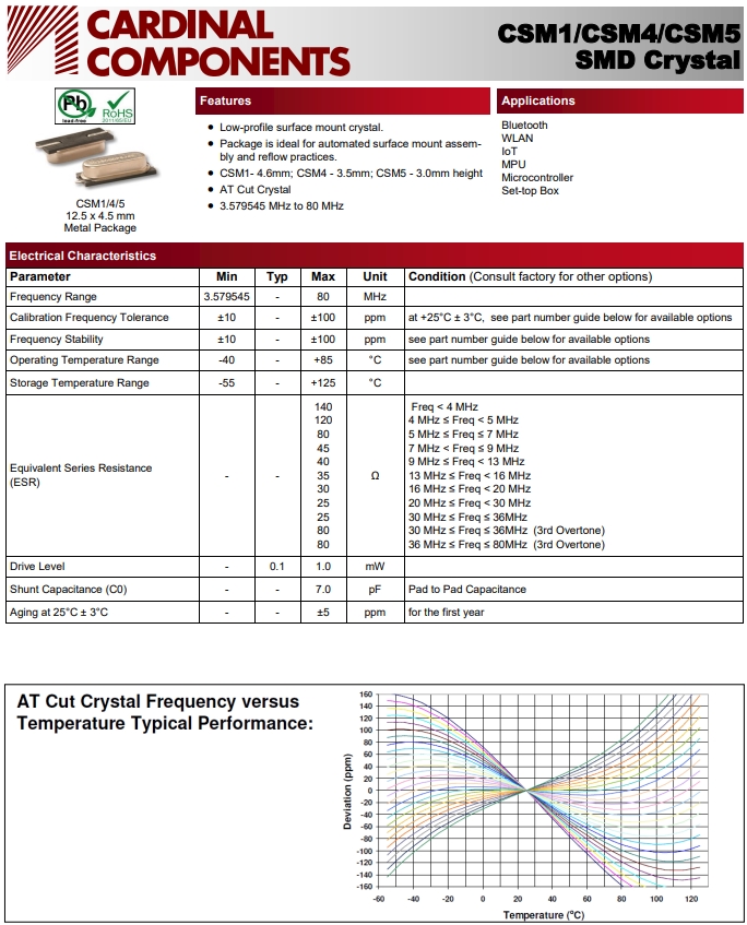 Cardinal石英晶體CSM1Z-A5B2C5-40-25.0D18-F振動方塊詳細解說